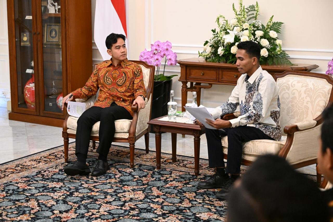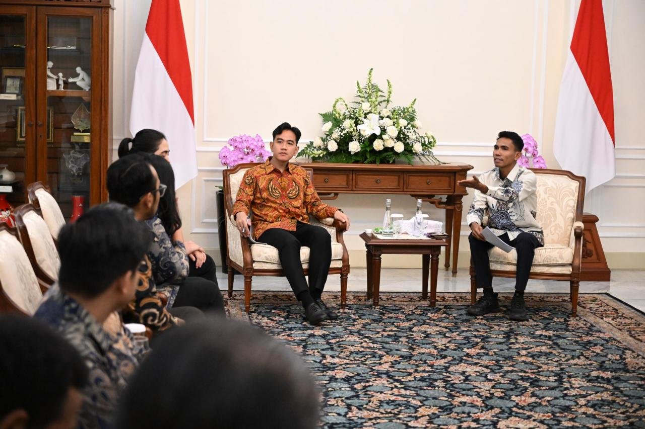 Foto Audiensi SPEDA dengan Wapres Gibran Rakabuming Raka Kamis, 11 Desember 2025 - 21:45 WIB 0 Shares WhatsappFacebookXThreadsCopy SPEDA (Solidaritas Pemuda Desa) melakukan audiensi dengan Wakil Presiden (Wapres) Gibran Rakabuming Raka di Istana Wapres. Gibran Rakabuming RakaSPEDAWakil Presiden Berita Terbaru Temui Wapres Gibran, Solidaritas Pemuda Desa Nyatakan Sikap Mendukung Program MBG, Kopdes,... Rabu, 10 Desember 2025 - 18:45 WIB Ketum Solidaritas Pemuda Desa Kritik Peraturan Menkeu Purbaya soal Alokasi Dana Desa Kamis, 11 Desember 2025 - 20:42 WIB Solidaritas Pemuda Desa (SPEDA) Resmi Dideklarasikan! Kamis, 11 Desember 2025 - 20:42 WIB Berita SebelumnyaTemui Wapres Gibran, Solidaritas Pemuda Desa Nyatakan Sikap Mendukung Program MBG, Kopdes, UMKM, Sekolah Rakyat hingga Teknologi AI masuk DesaBerita SelanjutnyaRapat Penguatan Ekonomi Sosial dan Pemberdayaan Pemuda dengan Wamenaker